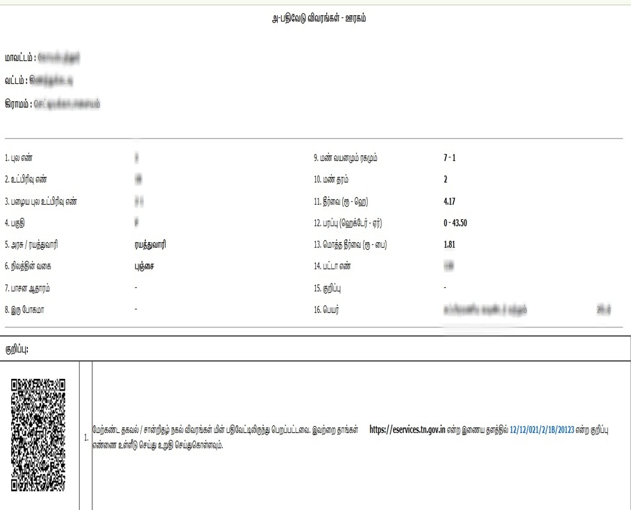 Supports land mutation processes by showing current landholder. - Used in Court or Revenue Office as Legal Proof