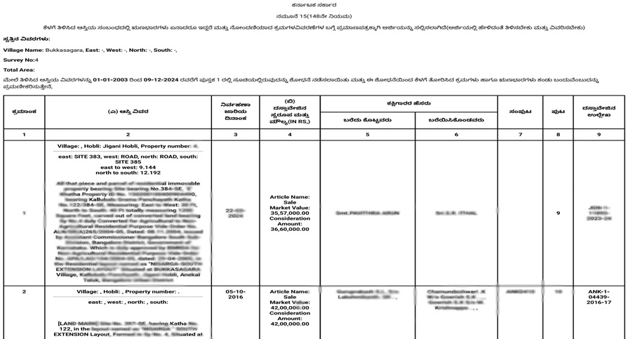 - SRO: Sub-Registrar Office details